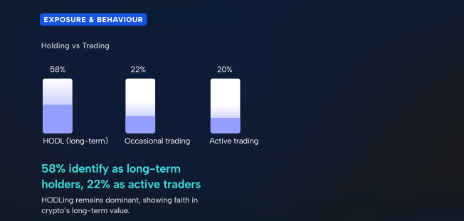 The survey additionally reveals a maturing investor base. 58% establish as long-term holders, whereas 42% have saved their investments for greater than two years.