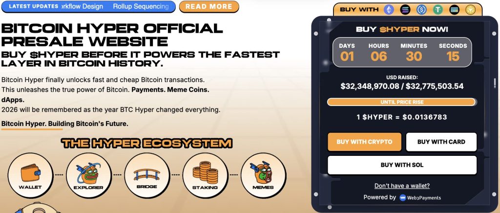 The core technical differentiator: Bitcoin Hyper operates as a Bitcoin-native Layer 2 executing sensible contracts with BTC as the settlement asset – bypassing the wrapped-token credit score threat that plagues present BTC DeFi infrastructure.