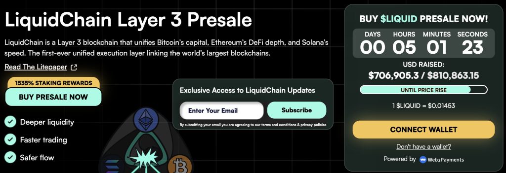 LiquidChain is positioning round that concept, aiming to attach Bitcoin, Ethereum, and Solana liquidity into one layer so builders and customers will not be tied to a single ecosystem.