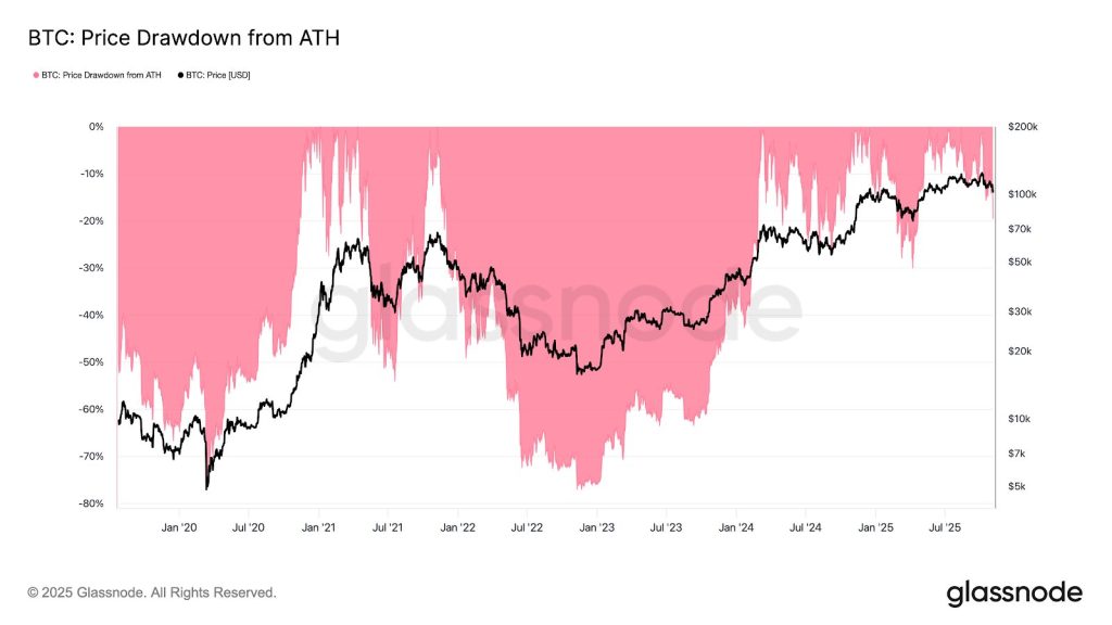 Some merchants have known as for calm, suggesting the correction is inside historic norms. Data from Glassnode shows Bitcoin’s drawdown from October’s all-time high is about 21%, per prior cycles.