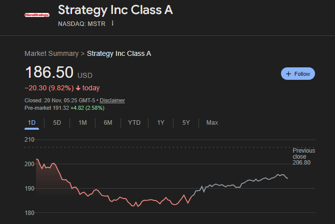 Even large-cap names confronted stress: Michael Saylor’s Bitcoin treasury firm, Strategy, dropped 9.82% throughout Wednesday’s session earlier than recovering some losses after hours.