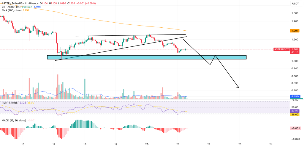 If the downtrend continues, it’s extremely doubtless that ASTER will drop to $1. This psychological threshold has already acted as a powerful bouncing pad in the 1-hour timeframe. However, if the worth drops beneath that mark, the chances favor a a lot deeper correction towards $0.80 or decrease.