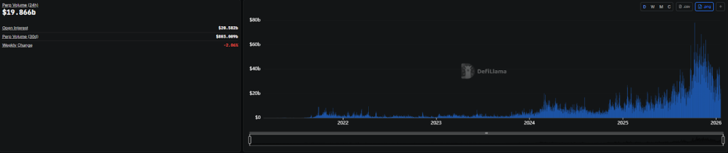 Data from DefiLlama shows that the total exercise in the sector continues to explode, with cumulative perp quantity exceeding $803 billion over 30 days.