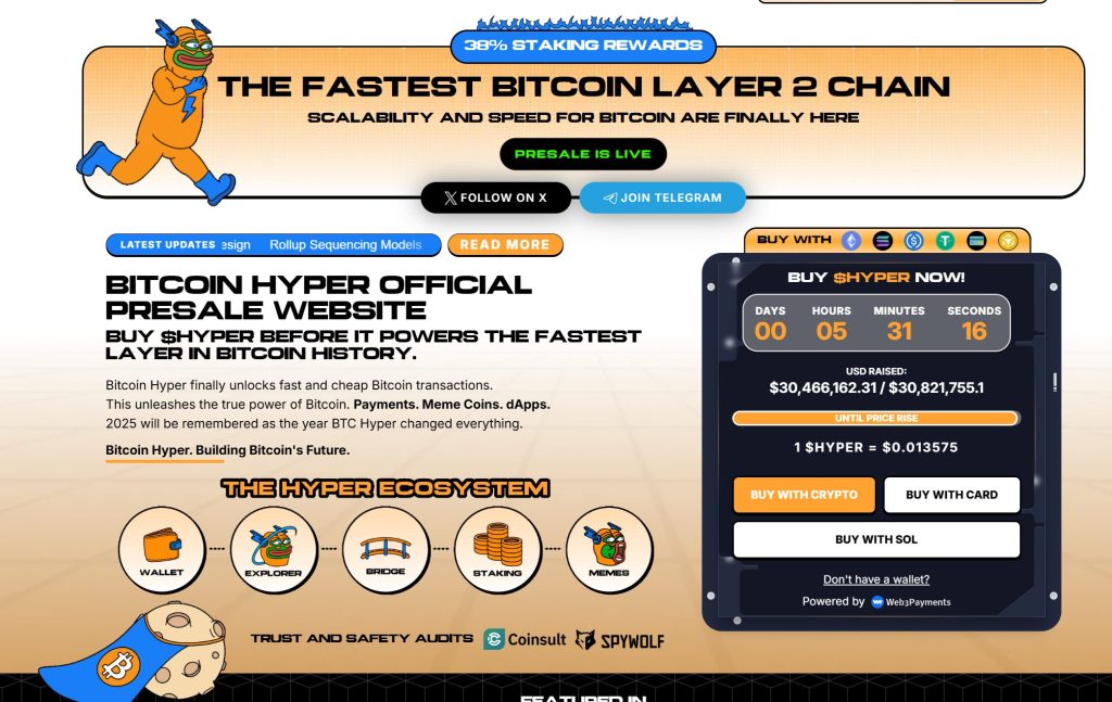 Bitcoin Hyper ($HYPER) is bringing a brand new section to the Bitcoin ecosystem. While BTC stays the gold normal for safety, Bitcoin Hyper provides what it at all times lacked: Solana-level velocity. The outcome: lightning-fast, low-cost good contracts, decentralized apps, and even meme coin creation, all secured by Bitcoin.