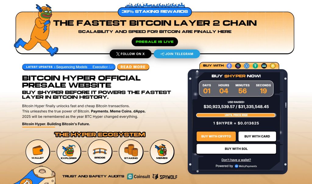 Bitcoin Hyper ($HYPER) is bringing a brand new section to the BTC ecosystem. While BTC stays the gold commonplace for safety, Bitcoin Hyper provides what it all the time lacked: Solana-level velocity. The outcome: lightning-fast, low-cost sensible contracts, decentralized apps, and even meme coin creation, all secured by Bitcoin.