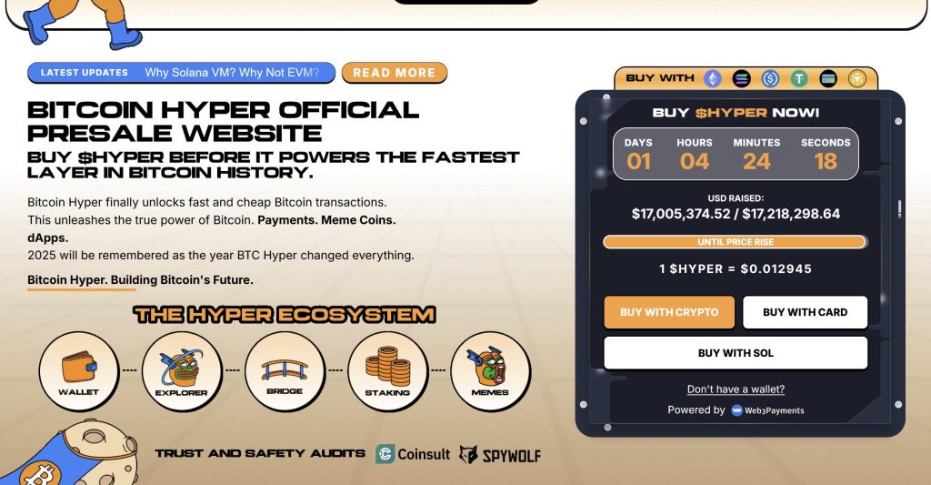 Momentum is constructing rapidly. The presale has already crossed $17 million, leaving solely a restricted allocation nonetheless obtainable. At right this moment’s stage, HYPER tokens are priced at simply $0.012945—however that determine will improve because the presale progresses.