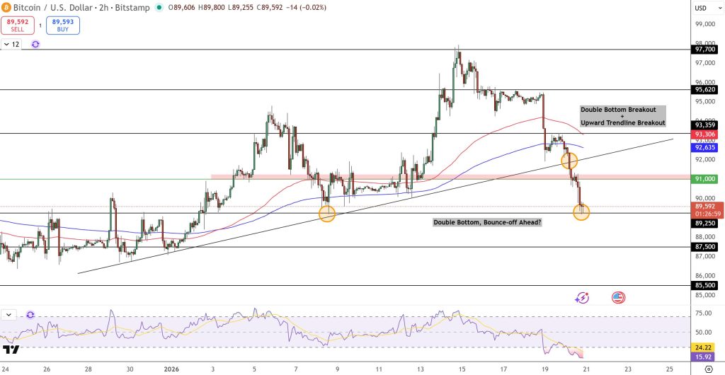 Bitcoin Price Prediction: Double Bottom Near $89K — Is a Short-Term Bounce Forming?