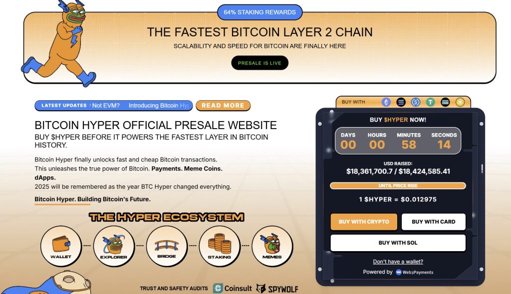 Momentum is constructing rapidly. The presale has already crossed $18.3 million, leaving solely a restricted allocation nonetheless out there. At at the moment’s stage, HYPER tokens are priced at simply $0.012975—however that determine will improve because the presale progresses.