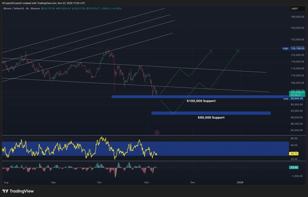 Bitcoin’s latest pullback has introduced the worth all the way down to the crucial $100,000 help zone after failing to carry the $120,000 stage.