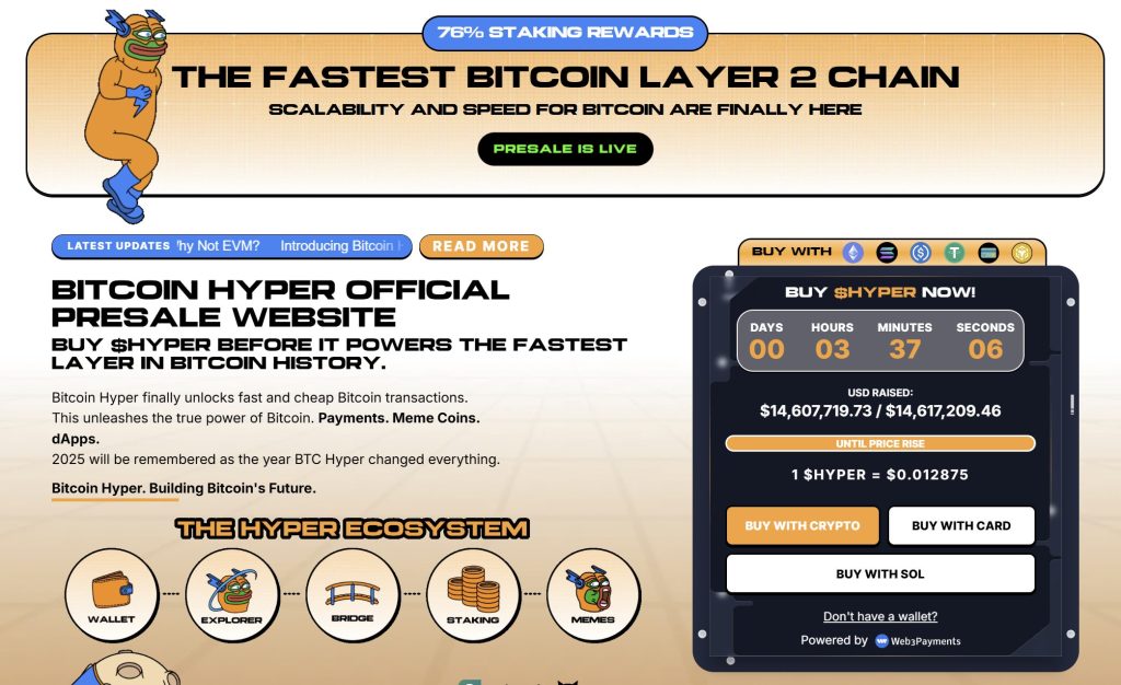 Momentum is constructing rapidly. The presale has already crossed $14.6 million, leaving solely a restricted allocation nonetheless obtainable. At as we speak’s stage, HYPER tokens are priced at simply $0.012875—however that determine will improve because the presale progresses.