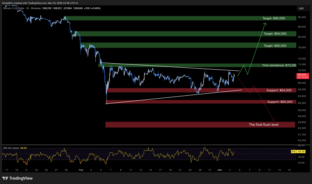 Bulls have one clear invalidation stage. A powerful 2h or day by day shut above $72,000, with comply with by way of, breaks the descending resistance and shifts construction. That would open the trail towards $80,000, then $84,000 and probably $90,000.