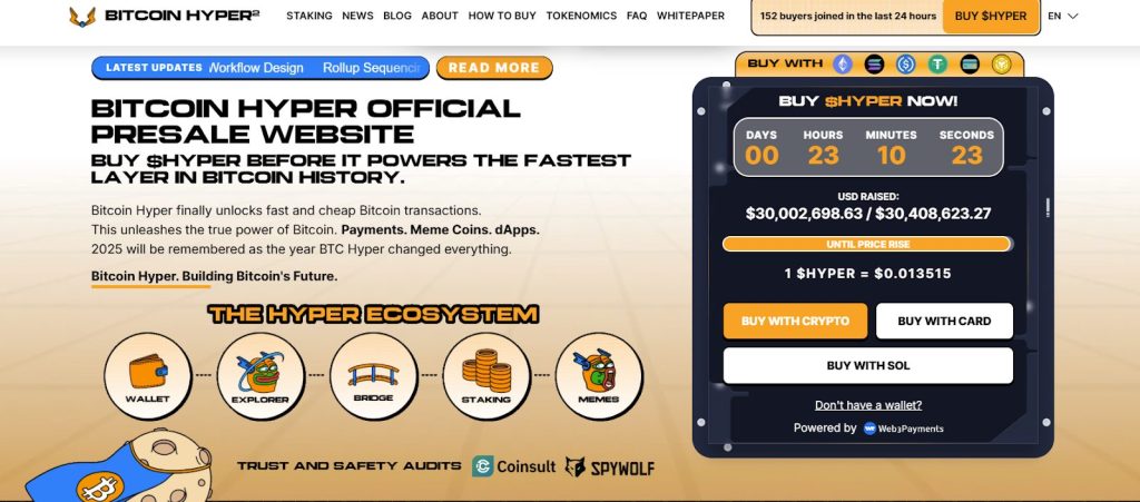 Bitcoin Hyper ($HYPER) is one other challenge producing substantial consideration because it develops the primary practical Layer 2 resolution for Bitcoin, using Solana-based know-how to ship pace and scalability whereas preserving Bitcoin’s safety mannequin.