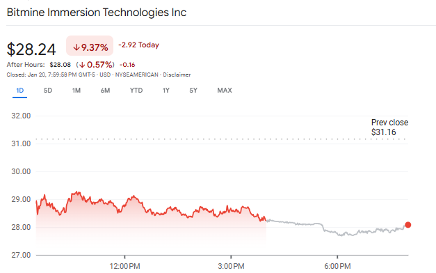 Following the information, Bitmine inventory is buying and selling barely above $28, far under its mid-2025 peak, but it stays one of the most actively traded shares in the United States, with common day by day greenback quantity round $1.5 billion.