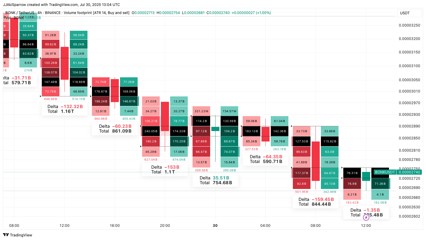 Unless the market reclaims the $0.00002950–$0.00003000 range decisively with volumes, $BONK remains vulnerable to further decline.