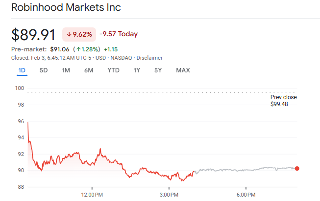 Robinhood and Circle had been down close to 10% and eight%, respectively, whereas BitMine and Bullish fell greater than 9% and 4%.