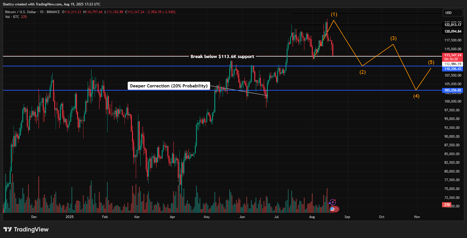 Nonetheless, failure to carry $113.6K would point out a deeper correction to the $110.4K$103K vary, creating an optimum accumulation alternative earlier than the following institutional wave drives Bitcoin towards cycle highs above $125K as distribution phases full.