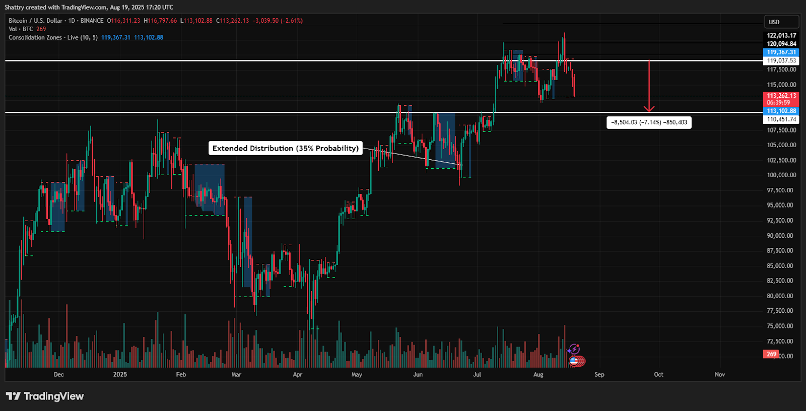 Continued institutional profit-taking might lead to consolidation between $110K$118K, permitting distribution completion whereas technical indicators reset for the following accumulation section.
