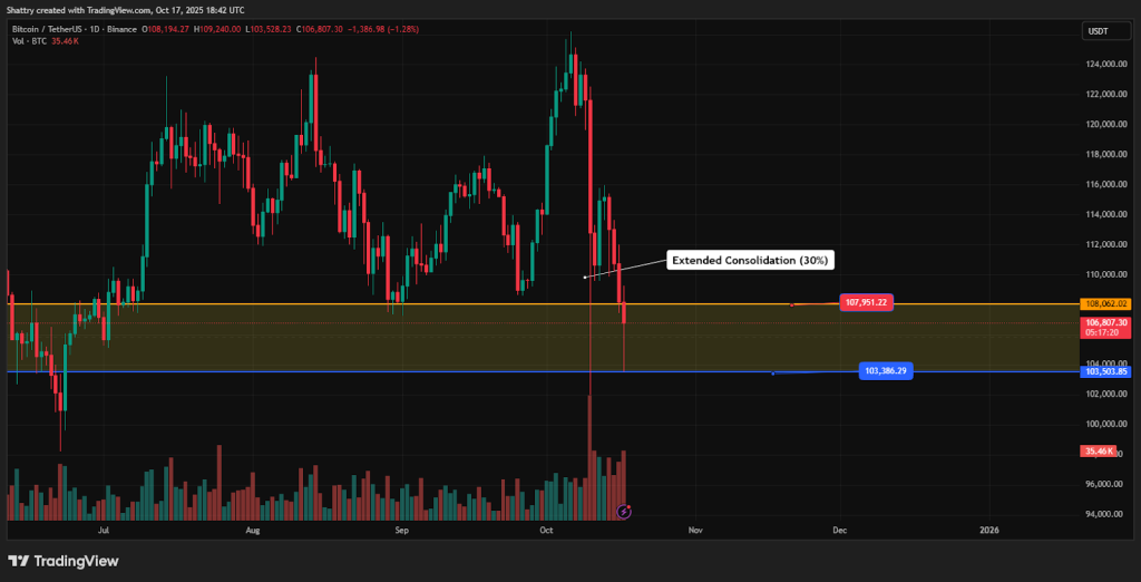 Range $103,500$108,000 permits institutional accumulation earlier than directional break.