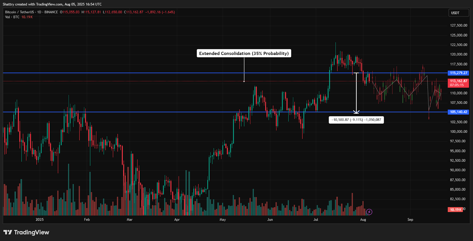 Successful defense of $112K support combined with regulatory progress could drive recovery toward $125K-$130K, representing 10-15% upside from current levels.