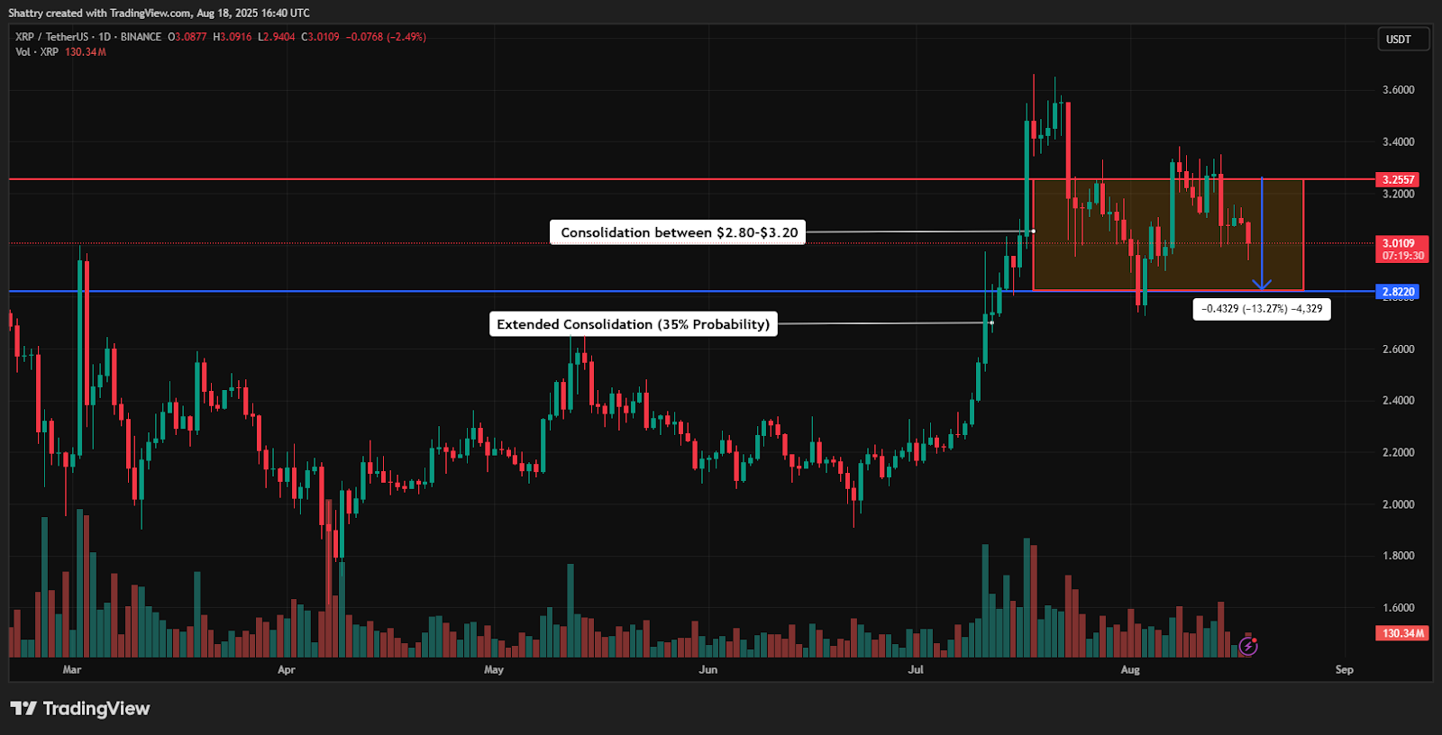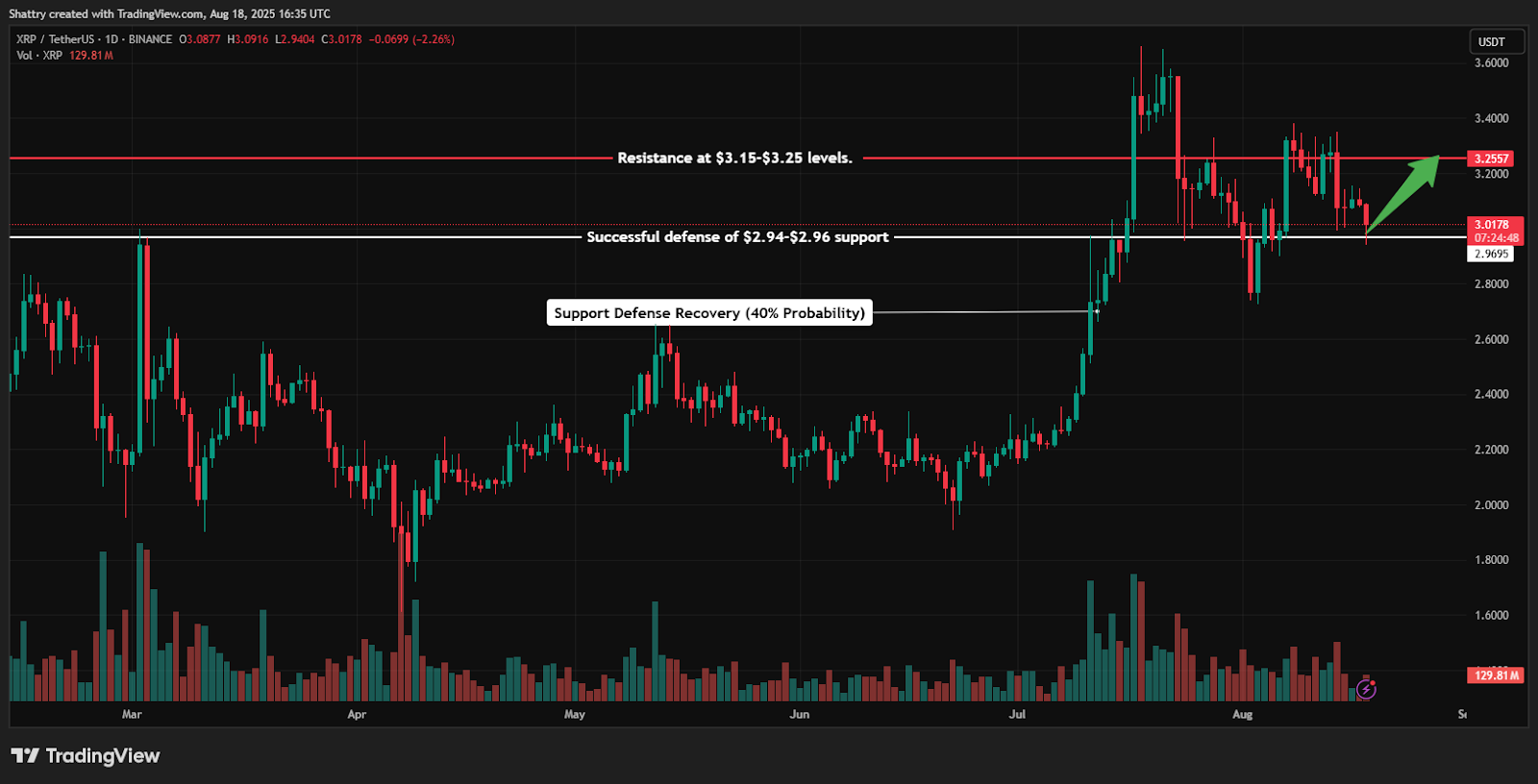 At the same time, technical analysts identify support defense opportunities at the current $2.96 level amid broader market uncertainty.