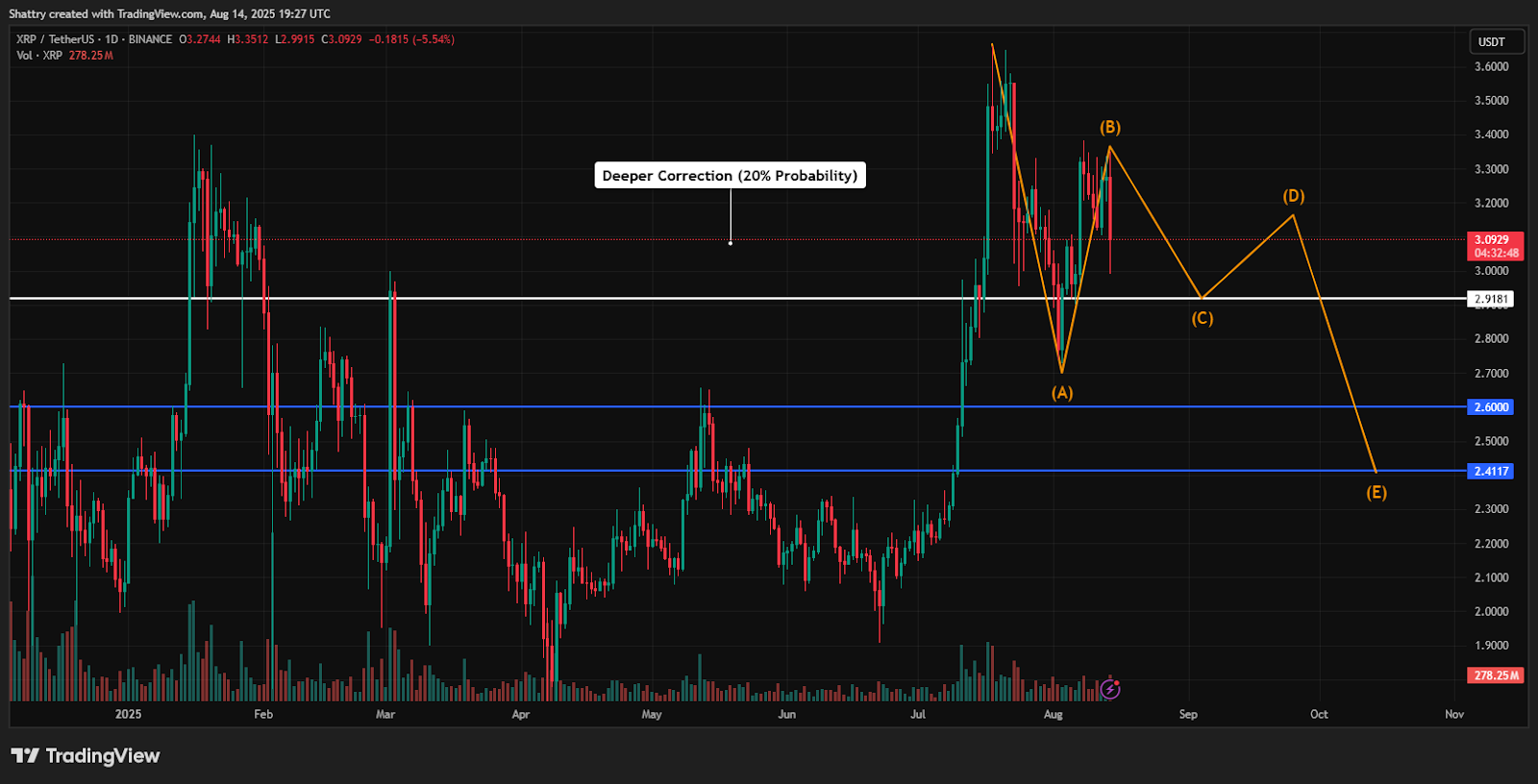 The technical setup suggests a key juncture requiring support defense at $2.99–$2.92 for bullish continuation, while a break below could trigger a deeper correction toward the $2.69–$2.42 major support zone.