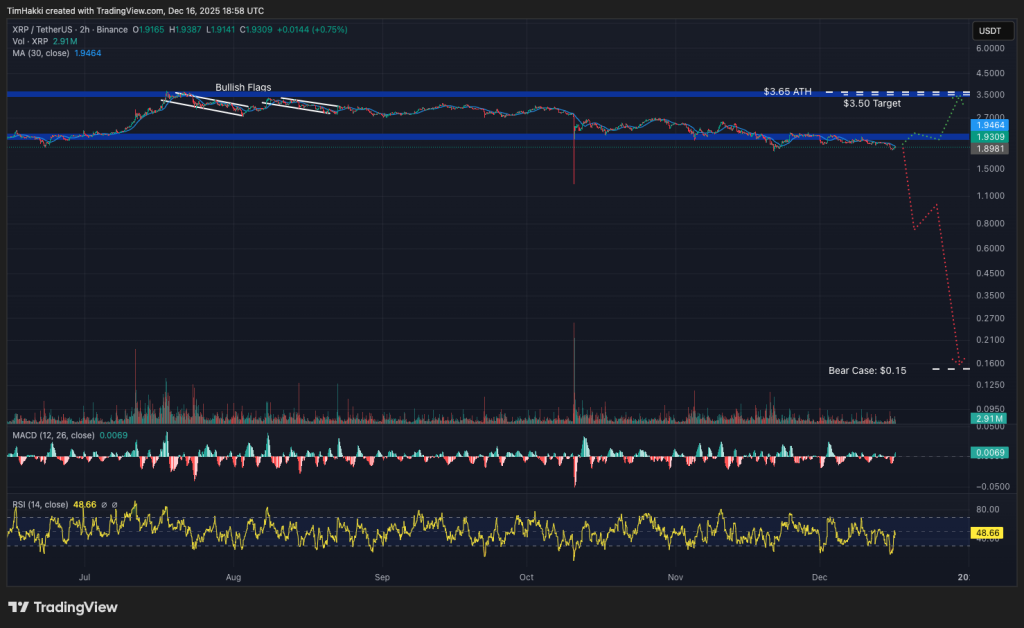 XRP (XRP): Alibaba AI Flags Risk of $0.15 Crash or Rally Toward $3.50 by Year-End