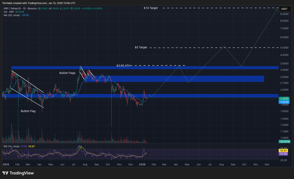 XRP’s Relative Strength Index (RSI) has cooled to 56 following profit-taking after the New Year rally. While short-term momentum has slowed, the token enjoys robust help at $2, heading off any dramatic loss of worth.