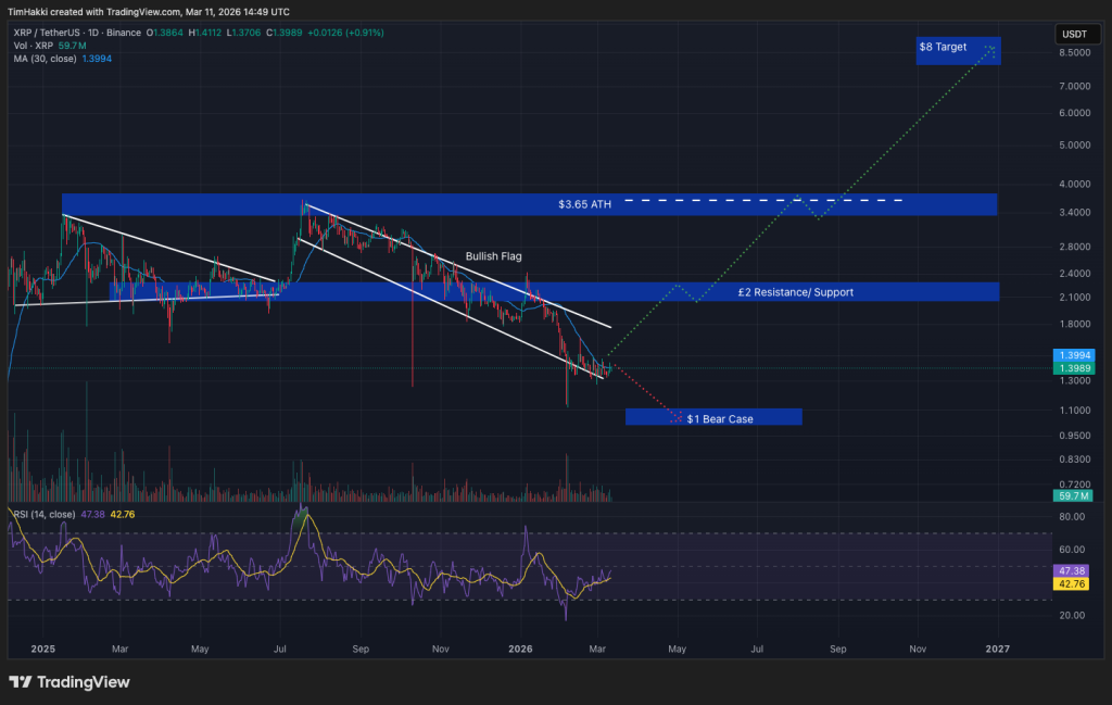 XRP is presently buying and selling round $1.40, and DeepSeek suggests the asset may doubtlessly rise towards $8 earlier than year-end, producing beneficial properties of almost 6x.