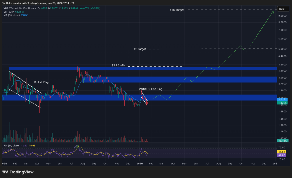 Technically, XRP’s Relative Strength Index is sitting close to 43. Since early January, value motion has been shaping a partial bullish flag formation. If that sample completes amid favorable macro circumstances and regulatory readability, it might gentle a fuse that will simply ship XRP to DeepSeek AI’s higher $10 projection.