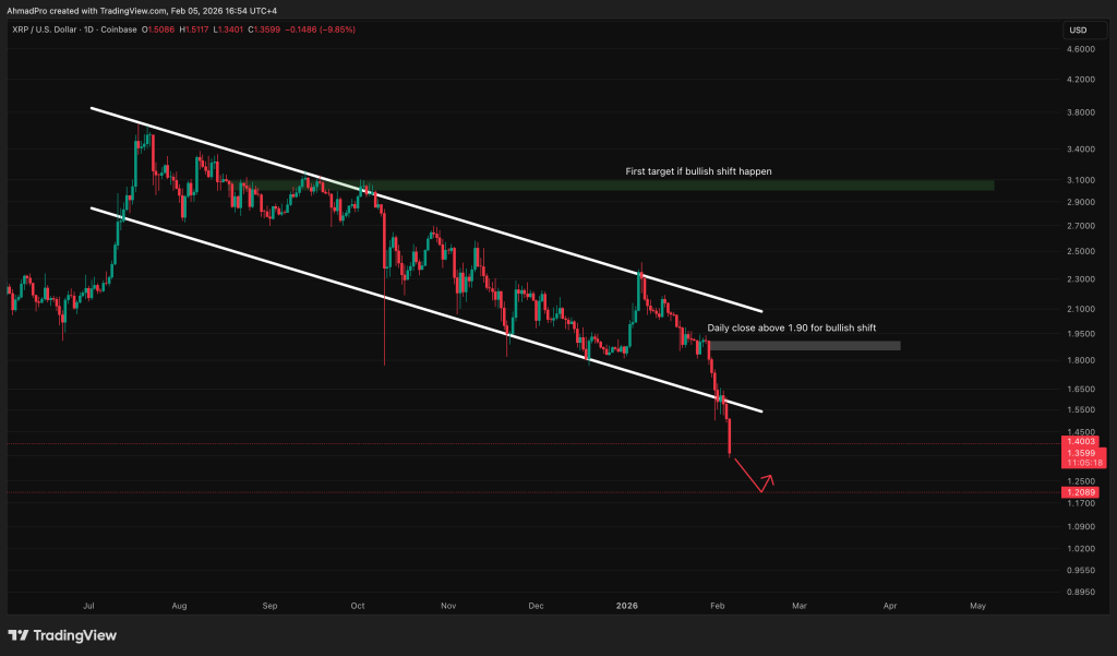 For any bullish shift, XRP must reclaim $1.90 on a every day shut. That would sign the breakdown was exhaustion, not continuation.