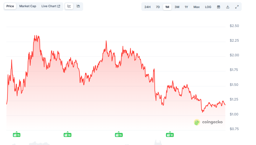 Still, the challenge’s token has fallen sharply, down 18.9% over the previous week and greater than 40% over the previous two weeks, now buying and selling at $1.19, round 50% under its all-time high of $2.41.