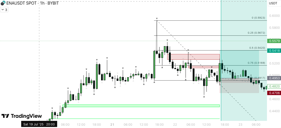 On the downside, invalidation of the bullish setup would occur if ENA closes below the support zone of $0.5350–$0.4940, with a stop-loss marked at $0.3930.