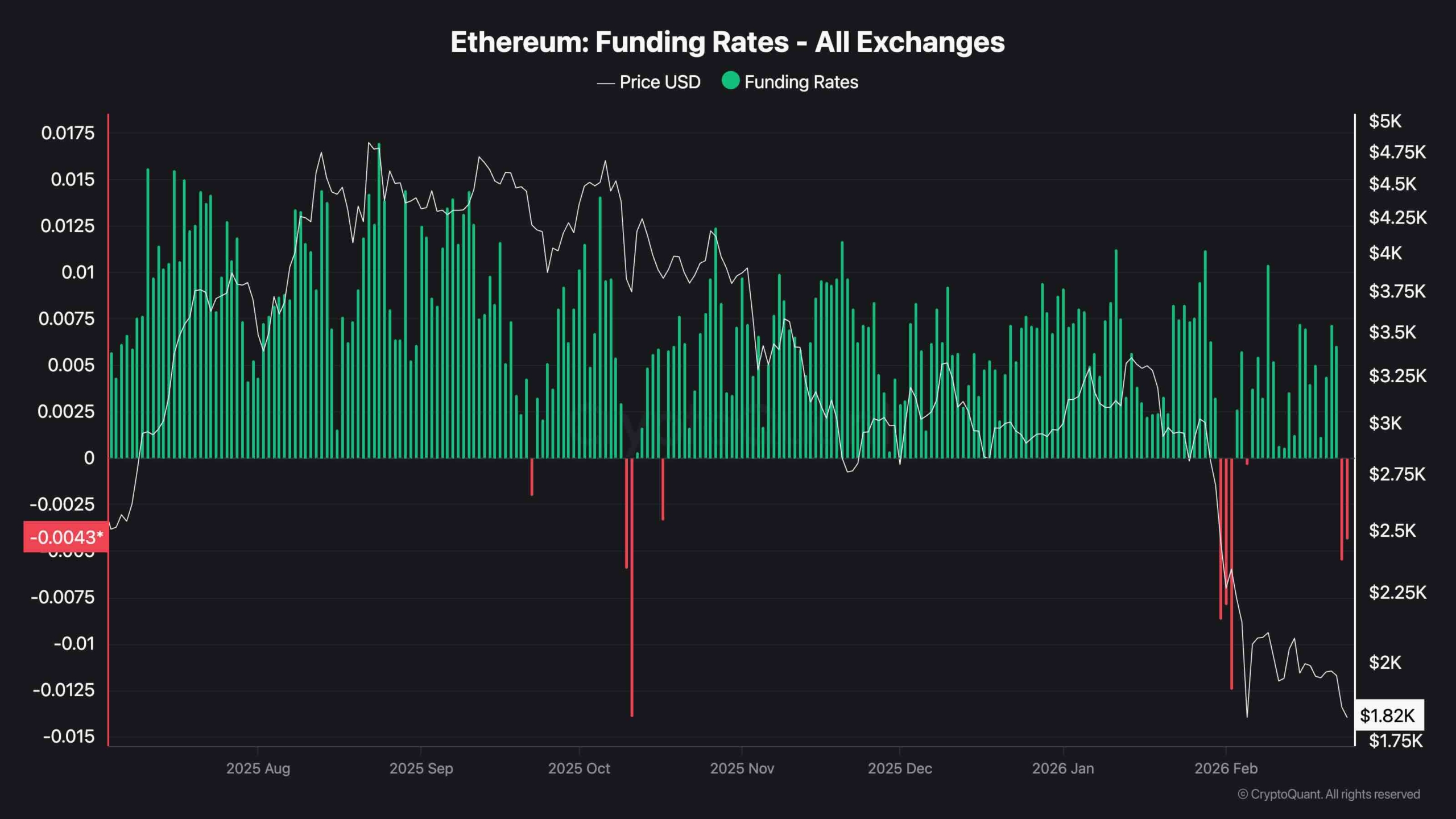 Perpetual futures positioning displays a markedly defensive stance: funding charges throughout main exchanges have flipped sharply detrimental and stay beneath zero after the latest decline, indicating that brief positions are paying longs and that the derivatives market is skewed towards bearish publicity.