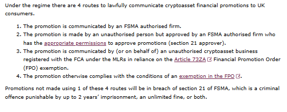 Under the UK’s Financial Services and Markets Act (FSMA), firms must not talk any invitation or inducement to have interaction in funding exercise until the promotion is allowed or accredited by a licensed entity.