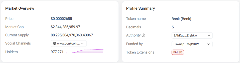 The broad adoption and interoperability of the $BONK token can be attributed to the integration of the Bonk network with more than 400 applications across 13 blockchains. Another important factor in its development is the network’s forward-thinking partnership within the Solana ecosystem, linking up with Magic Eden, Jupiter, and Orca platforms to enhance its exposure and liquidity.