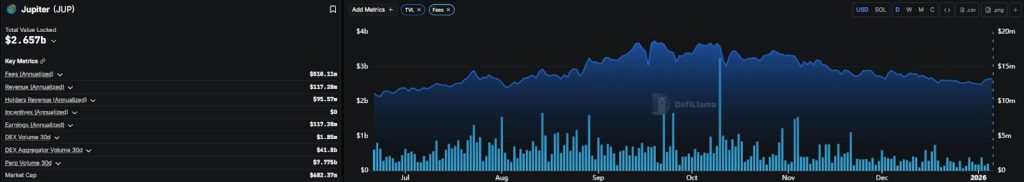 Jupiter’s state of affairs is extra advanced, because it operates some of the worthwhile DeFi platforms, with deep liquidity, massive TVL, and a rising suite of merchandise, together with perps, lending, and a cell pockets. Yet JUP stays largely elective.