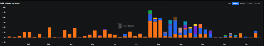 Data shows that in November, inflows into DATS have been solely $1.32 billion in inflows, their lowest stage of the yr, displaying a cooling of investor urge for food as volatility and regulatory uncertainty persist.