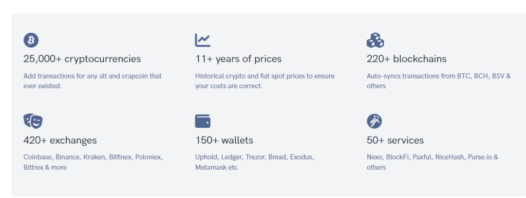 The platform routinely imports transaction knowledge from greater than 900 exchanges, wallets, and blockchains and classifies the transactions, determines the good points and losses, and produces tax filings for tax authorities.