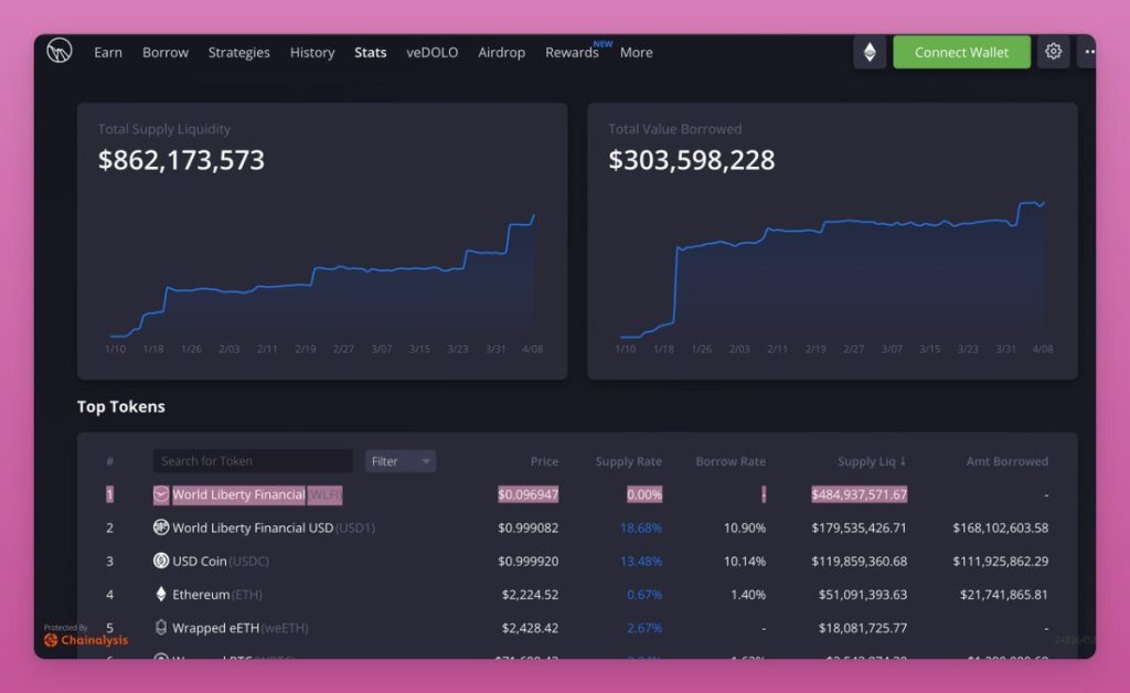 - The Deposit: Approximately $484M in $WLFI tokens has been deposited into Dolomite Protocol as collateral.