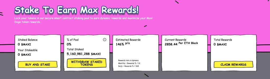 Long-term dedication can also be evident in the over 5 billion MAXI tokens dedicated to the staking protocol, producing a 146% dynamic APY.