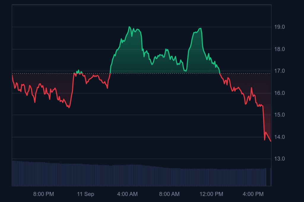 According to CoinMarketCap, the token is buying and selling at $13.81, down 17% in the final 24 hours, although nonetheless up greater than 1,000% over the previous week.