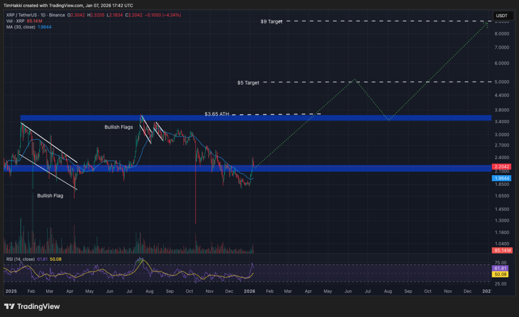 Ripple’s XRP ($XRP) has begun the 12 months on a robust be aware, rallying 19% over the previous week. Perplexity AI signifies that if present momentum holds, XRP may peak at $9 by late 2026.