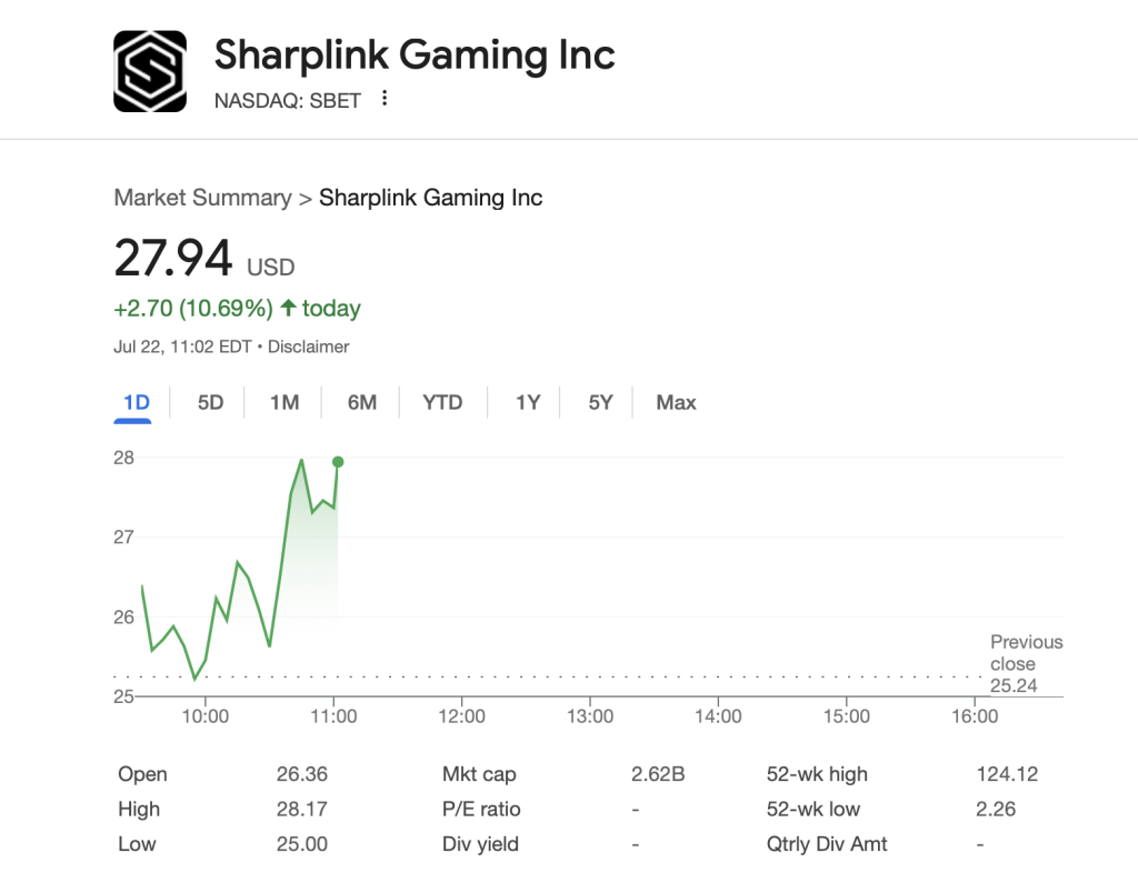 Joseph Lubin-backed SharpLink Gaming, Inc. (Nasdaq: SBET), the world’s largest corporate holder of Ethereum reported a major expansion in its crypto treasury holdings for the week of July 14 to July 20, 2025.