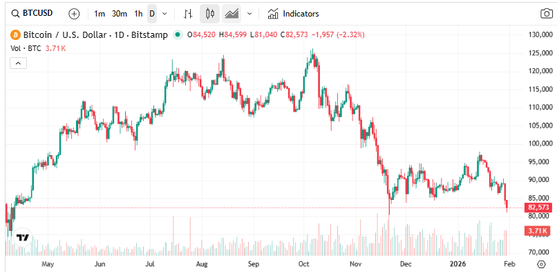 The cryptocurrency now trades over 34% under its record in October of over $126,000, which occurred amid an institutionally fueled run-up associated to inflows of spot ETFs.