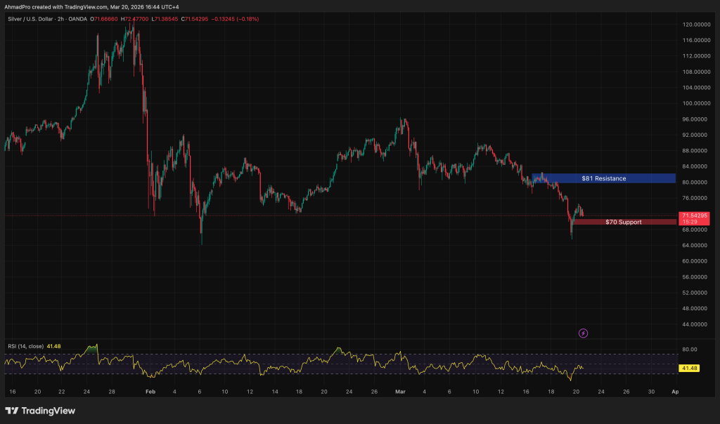 XAG/USD is buying and selling at $71.69, up 1.85% in 24 hours, however the restoration seems shaky. Price revisited lows close to $64.00 earlier this week earlier than bouncing. The technical construction has not improved a lot since.