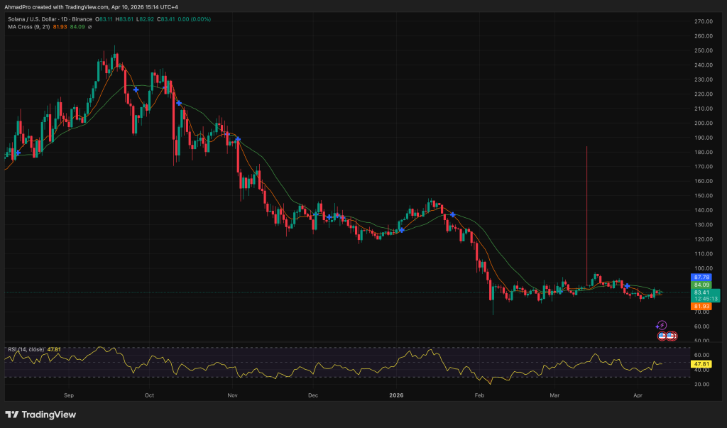 Solana value is buying and selling round $83, up 4.5% intraday after a temporary push to $85.20, and it doesn’t matter. The rebound has failed to reclaim the 50-day SMA sitting at $86, and that failure is the solely quantity that counts proper now.