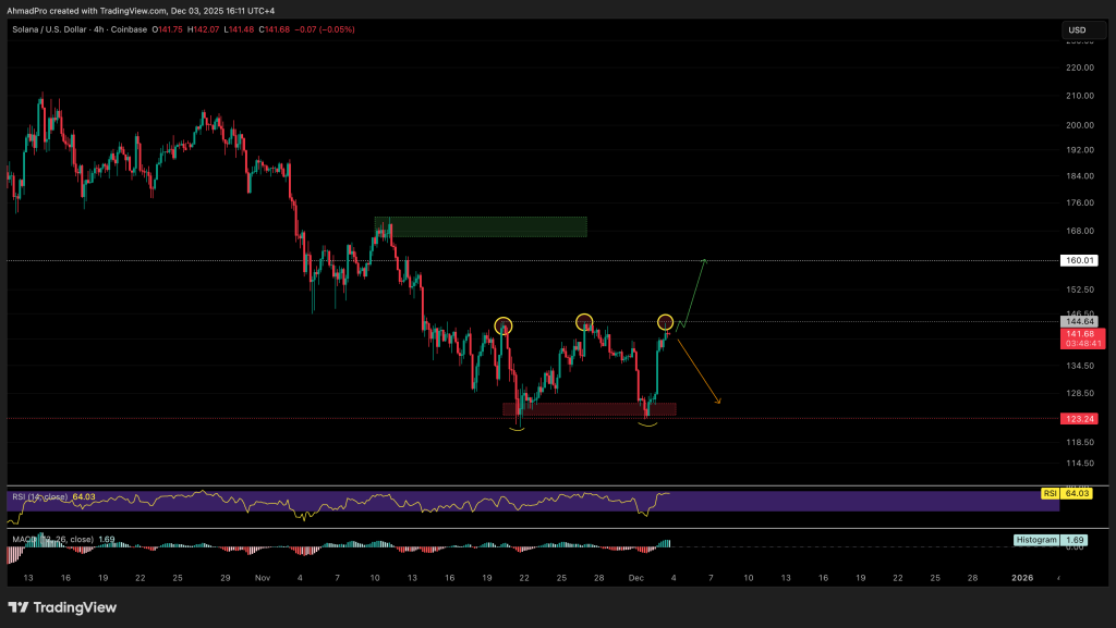 Solana is at the moment sitting round $141 and is as soon as once more making an attempt to retest the $144 degree, which became one of November’s hardest resistance zones. SOL hit this degree a number of occasions already and has not managed to interrupt by means of even as soon as.