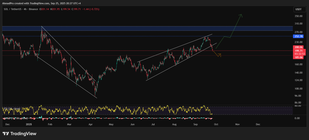 On the different hand, if SOL retains closing below $200–$198, it confirms the breakdown and opens the door for a sharper drop to $185 and even decrease.