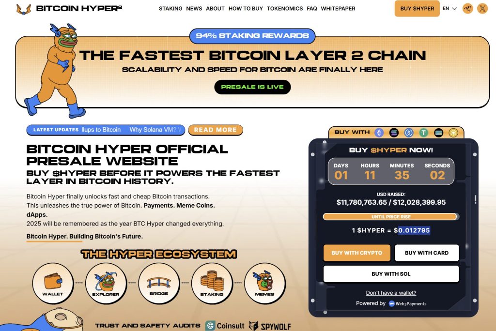 Momentum is constructing shortly. The presale has already crossed $11.7 million, leaving solely a restricted allocation nonetheless obtainable. At immediately’s stage, HYPER tokens are priced at simply $0.012795—however that determine will improve because the presale progresses.