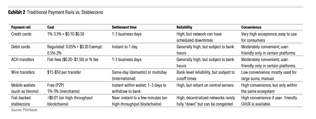Morningstar explains stablecoins are designed to mix the reliability of fiat currencies with the effectivity of blockchain. Not like conventional fee rails — bank cards, ACH, or wire transfers — stablecoin transactions settle in seconds.